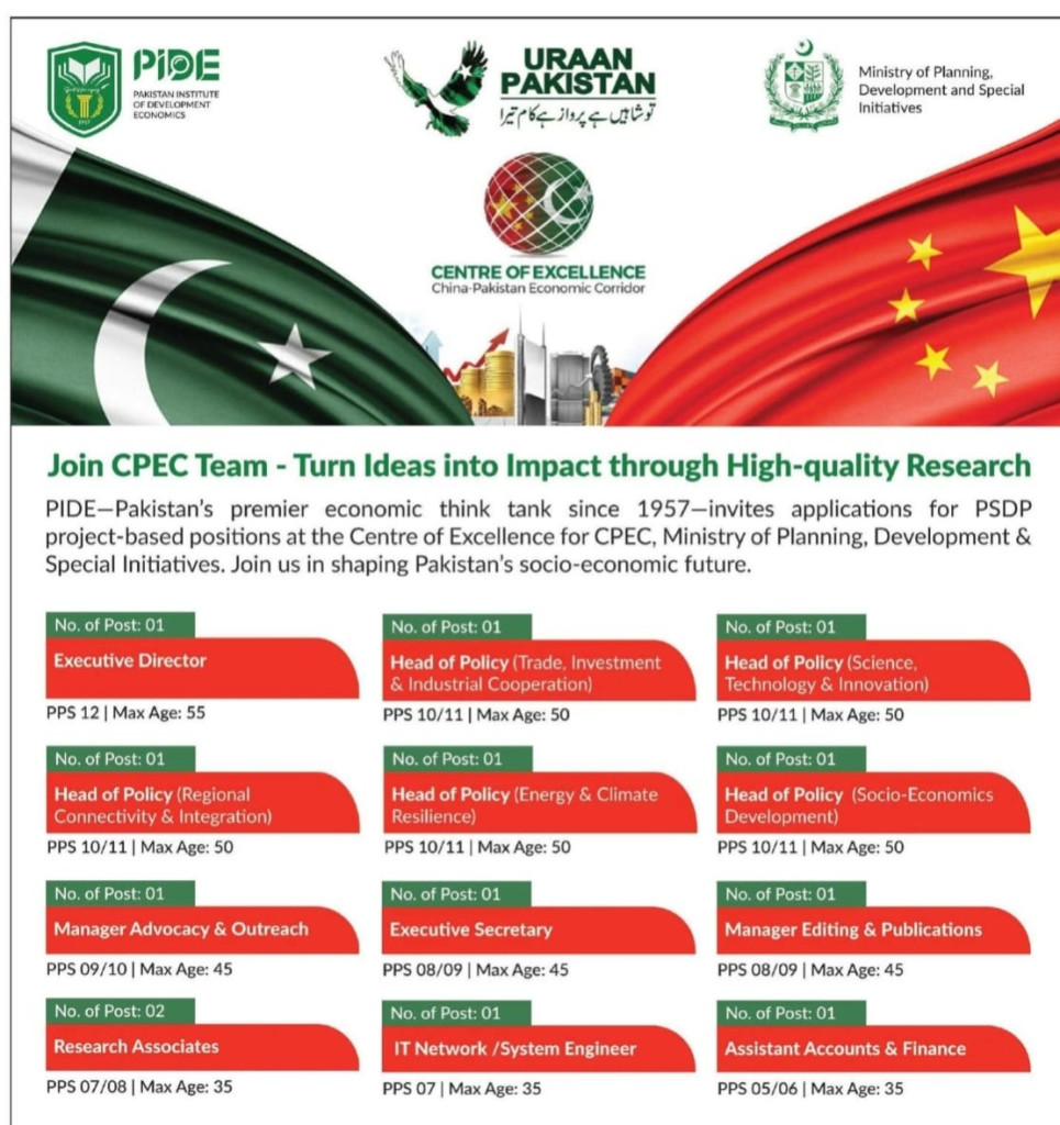 Ministry of Planning & Development Jobs 2026 are announced under a specific Initiative of Urban Pakistan. These Federal Planning Strategy Wing Jobs offered prestigious public sector research opportunity. Moreover, hiring is being conducted for the Pakistan Institute of Development Economics (PIDE).Ministry of Planning & Advancement Jobs 2026 are ideal for research-focused professionals. More attractive thing is its age limitation is beyond your imagination. A person having age 50 can also apply for this and the minimum age limit is 35 which is amazing. last is 25th january hurry up to Apply.