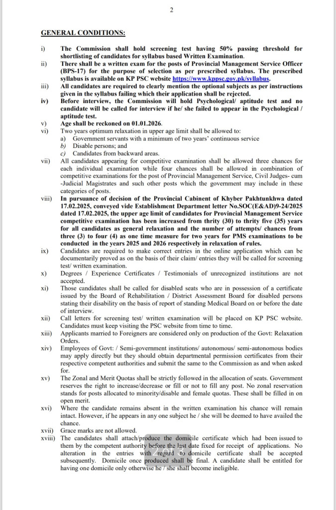 Eligibility Criteria for PMS KPK Jobs 2026 (Overview)